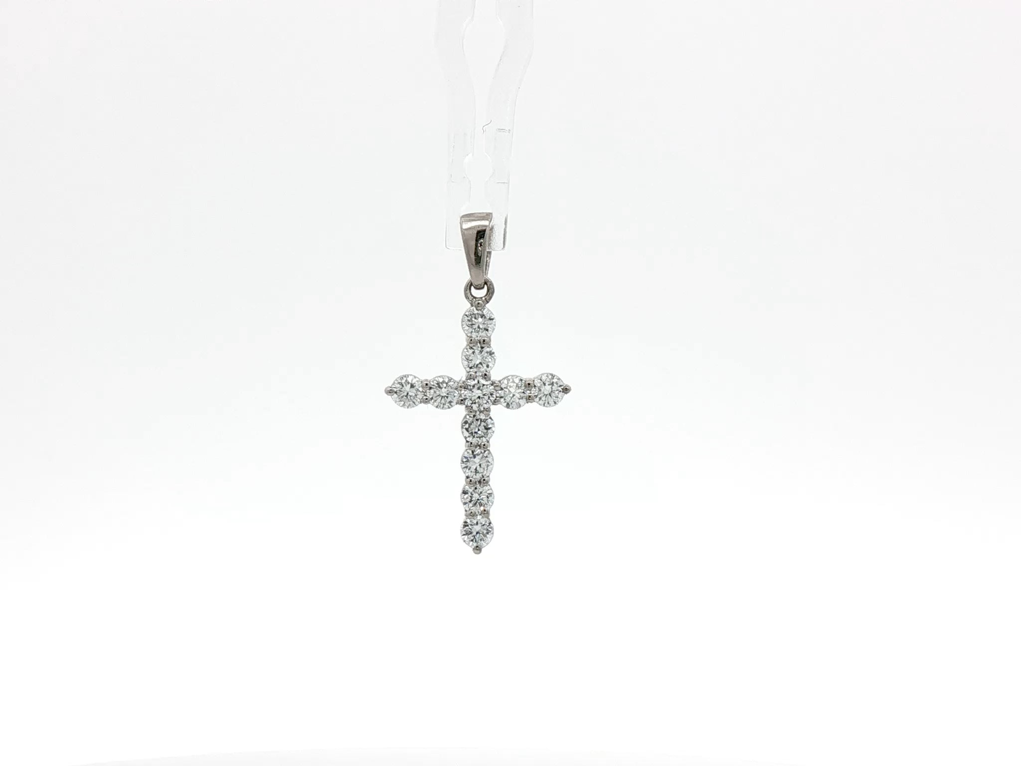 Elevate your style with our 18k gold lab grown cross pendant. Crafted with precision and grace, this lab grown diamond cross pendant features a refined shared claw setting that allows each stone to sit beautifully side by side, enhancing brilliance from every angle.