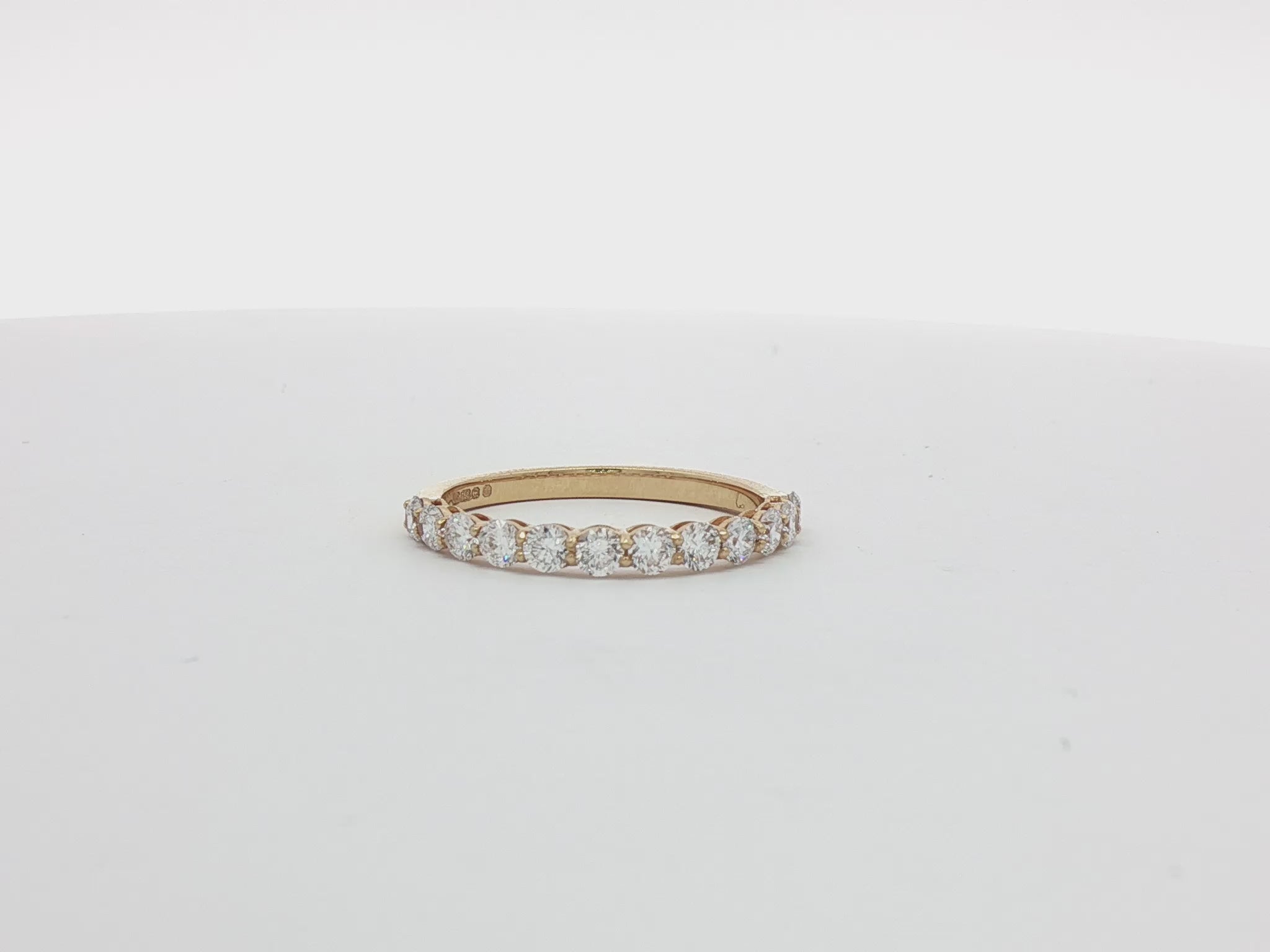 rinfCelebrate timeless elegance with our 18k Gold Half Eternity Ring, featuring lab grown diamonds set in a refined shared claw setting. Each diamond is carefully positioned to reflect light beautifully, creating a graceful, continuous line across the finger.