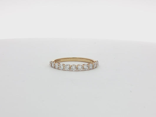 Total Diamond Weight: 0.80ctStone Shape: RoundDiamond Quantity: 13 DiamondsFinger Size: MDiamond Size: 2.50mmMetal: 18k GoldDiamond Quality: E VS/VVSSetting: Shared ClawUK Hallmarked: YesConflict-Free Diamonds: YesJewellery Report: World Gemological Institute