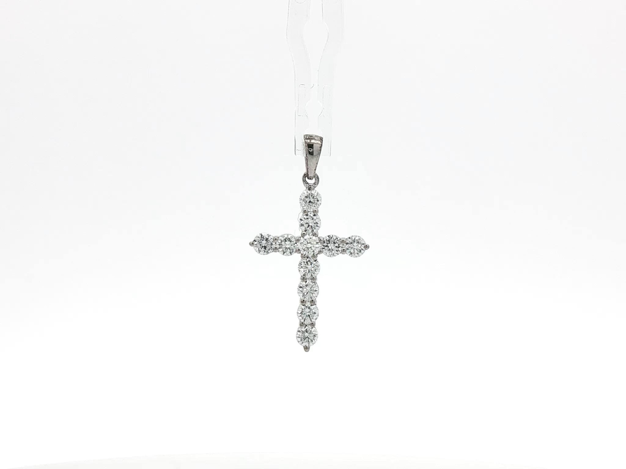 Elevate your style with our 18k gold lab grown cross pendant. Crafted with precision and grace, this lab grown diamond cross pendant features a refined shared claw setting that allows each stone to sit beautifully side by side, enhancing brilliance from every angle.