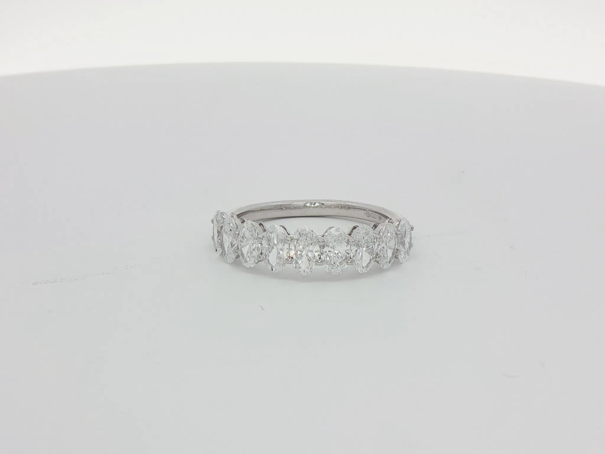 Total Diamond Weight: 1.60ctStone Shape: OvalDiamond Quantity: 9 DiamondsFinger Size: MDiamond Size: 18ptsMetal: 9k White GoldDiamond Quality: E VS/VVSSetting: Shared ClawUK Hallmarked: YesConflict-Free Diamonds: YesJewellery Report: World Gemological Institute