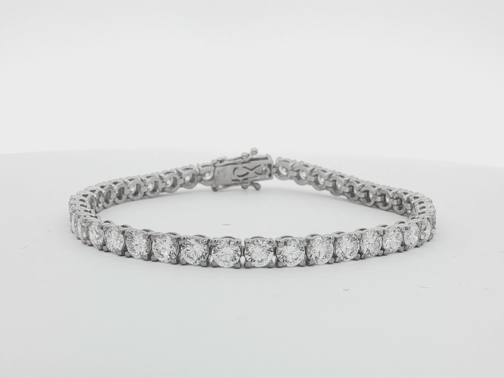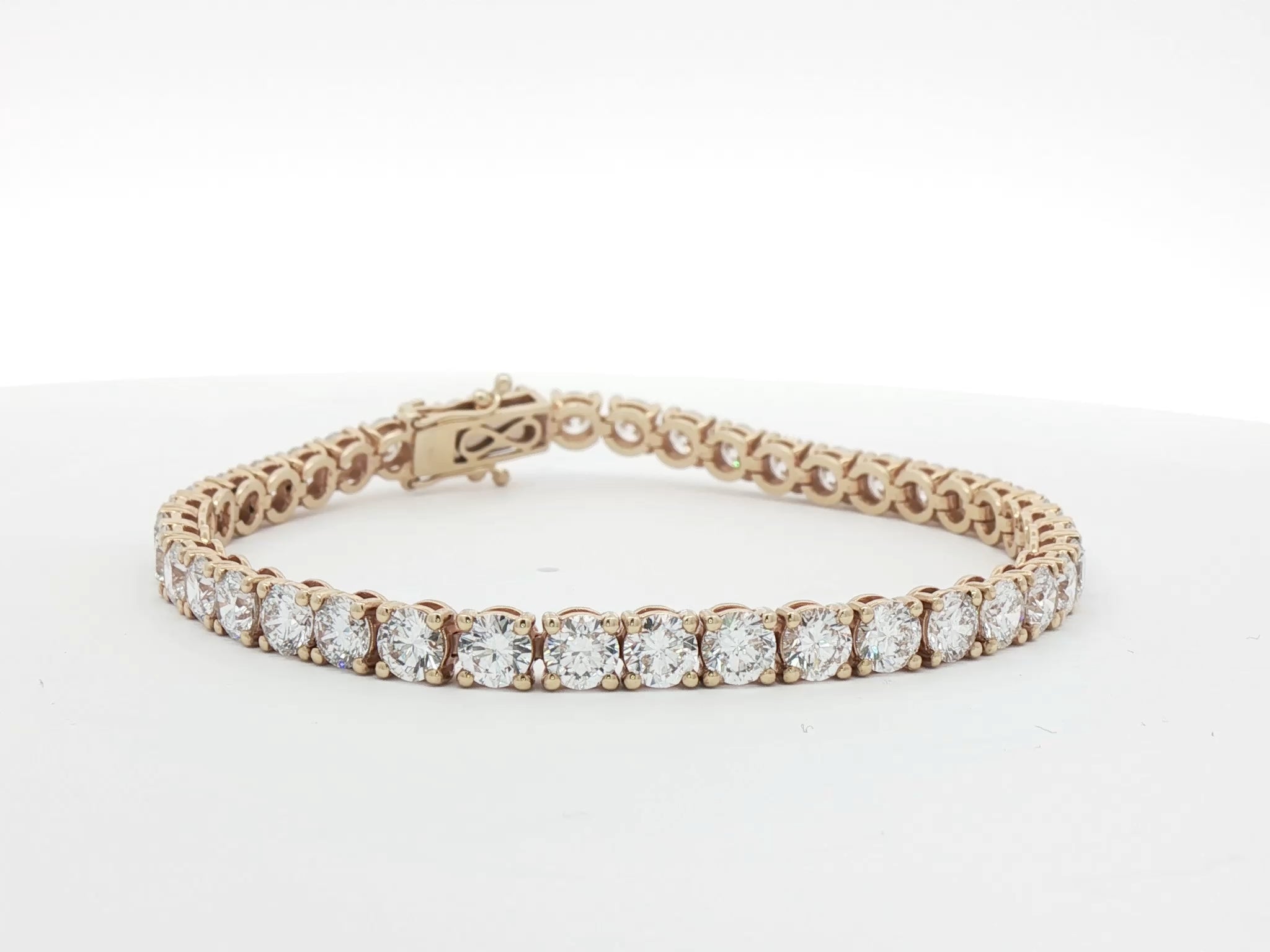 Total Diamond Weight: 12.00ctStone Shape: RoundLength: 7.25 inchesDiamond Size: 4.25mmMetal: 18k GoldDiamond Quality: E VS/VVSSetting: Classic Four ClawUK Hallmarked: YesConflict-Free Diamonds: YesJewellery Report: World Gemological Institute