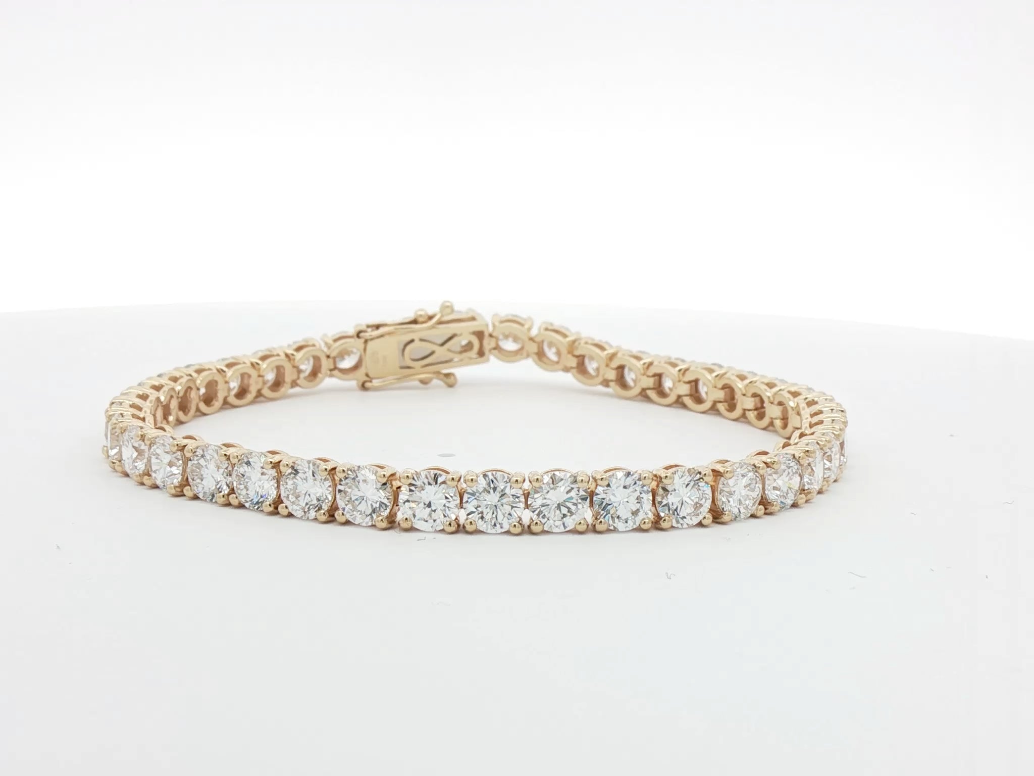 Total Diamond Weight: 14.00ctStone Shape: RoundLength: 7.25 inchesDiamond Size: 4.50mmMetal: 9k GoldDiamond Quality: E VS/VVSSetting: Classic Four ClawUK Hallmarked: YesConflict-Free Diamonds: YesJewellery Report: World Gemological Institute