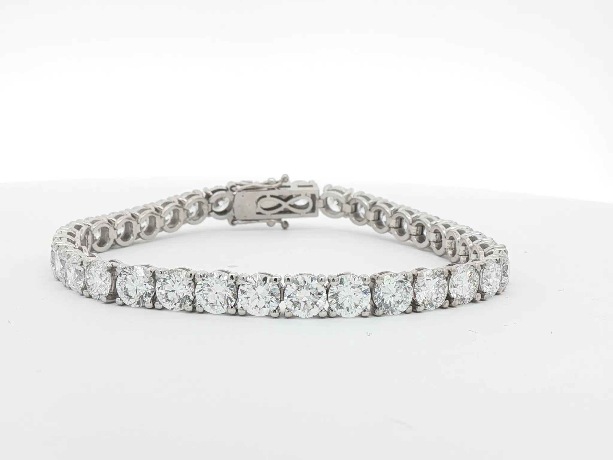 Total Diamond Weight: 19.00ctStone Shape: RoundLength: 7.25 inchesDiamond Size: 5.20mmMetal: 9k GoldDiamond Quality: E VS/VVSSetting: Classic Four ClawUK Hallmarked: YesConflict-Free Diamonds: YesJewellery Report: World Gemological Institute