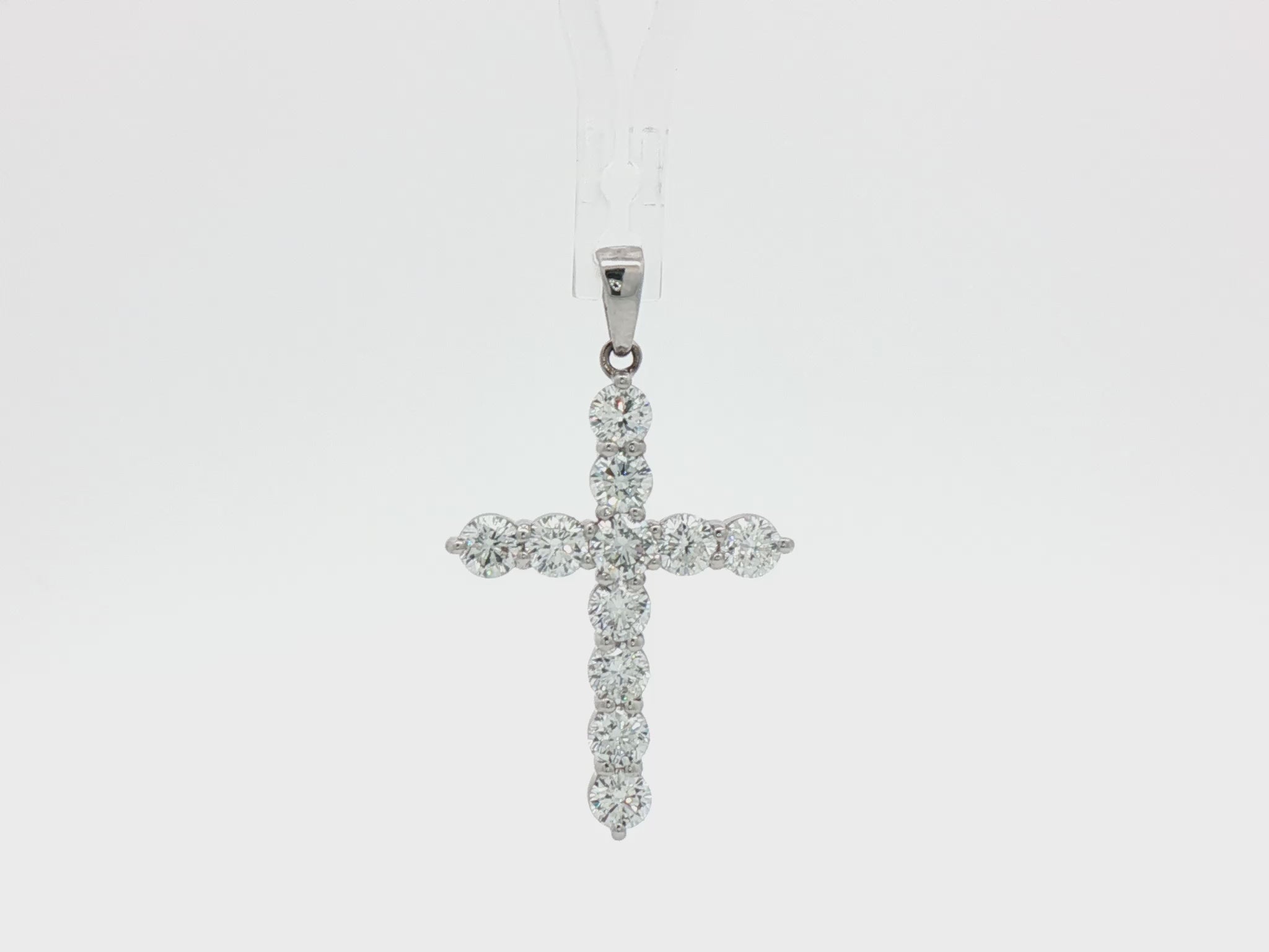 Elevate your style with our 18k gold lab grown cross pendant. Crafted with precision and grace, this lab grown diamond cross pendant features a refined shared claw setting that allows each stone to sit beautifully side by side, enhancing brilliance from every angle.