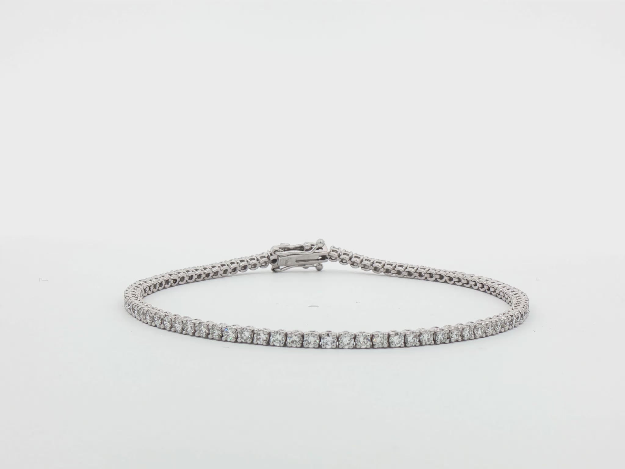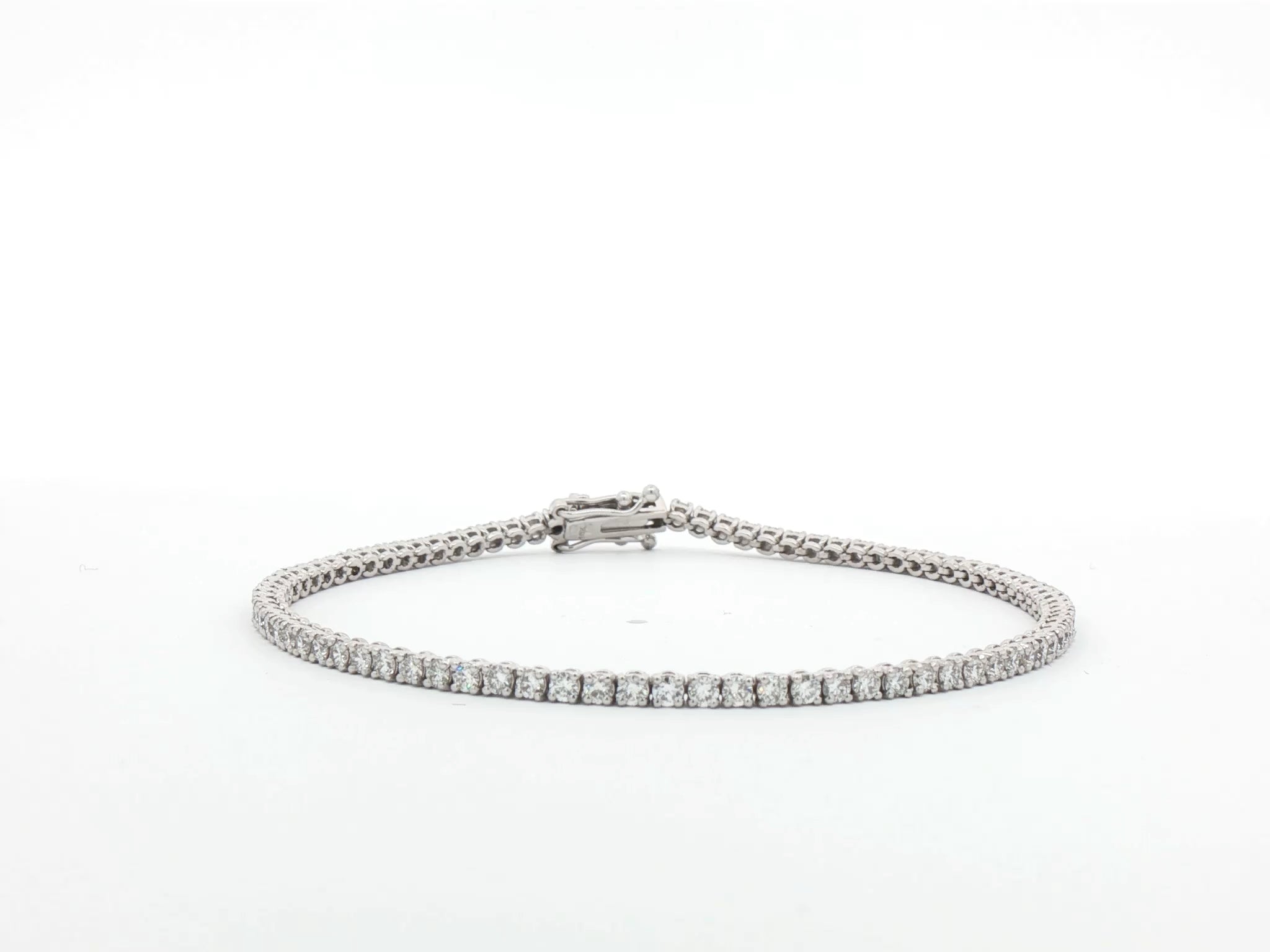 Total Diamond Weight: 2.00ctStone Shape: RoundLength: 7.25 inchesDiamond Size: 1.85mmMetal: 18k GoldDiamond Quality: E VS/VVSSetting: Classic Four ClawUK Hallmarked: YesConflict-Free Diamonds: YesJewellery Report: World Gemological Institute