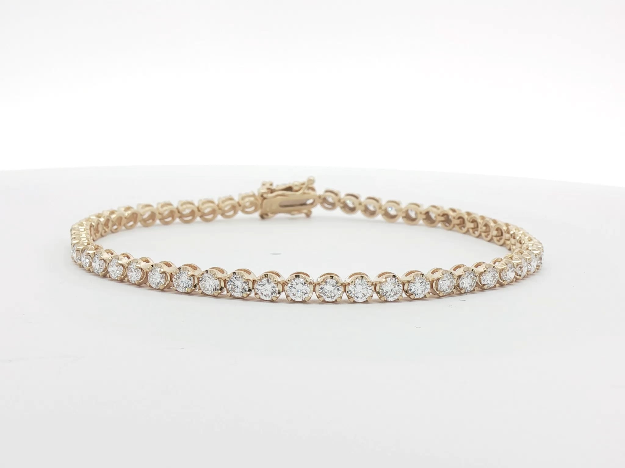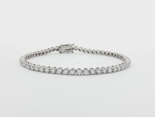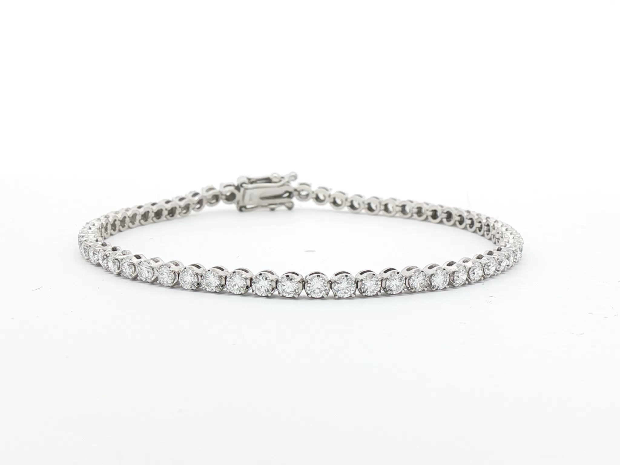 Total Diamond Weight: 3.00ctStone Shape: RoundLength: 7.25 inchesDiamond Size: 2.45mmMetal: 18k GoldDiamond Quality: E VS/VVSSetting: Crown SetUK Hallmarked: YesConflict-Free Diamonds: YesJewellery Report: World Gemological Institute