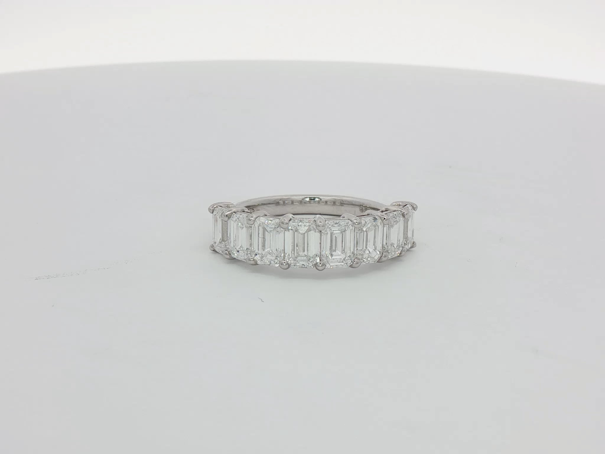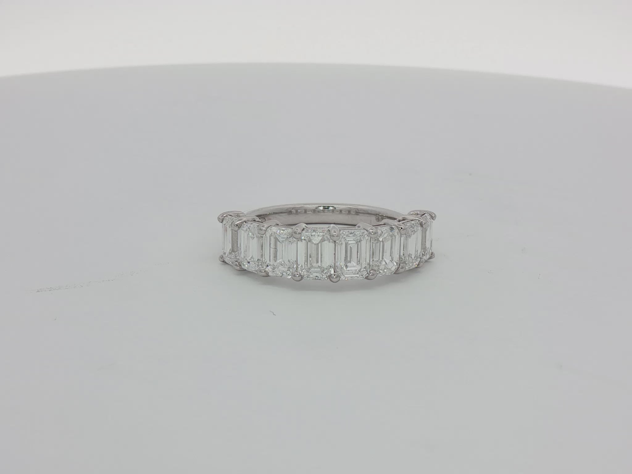 Total Diamond Weight: 3.00ctStone Shape: Emerald CutDiamond Quantity: 8 DiamondsFinger Size: MDiamond Size: 5 x 3.5mmMetal: 9k White GoldDiamond Quality: E VS/VVSSetting: Shared ClawUK Hallmarked: YesConflict-Free Diamonds: YesJewellery Report: World Gemological Institute