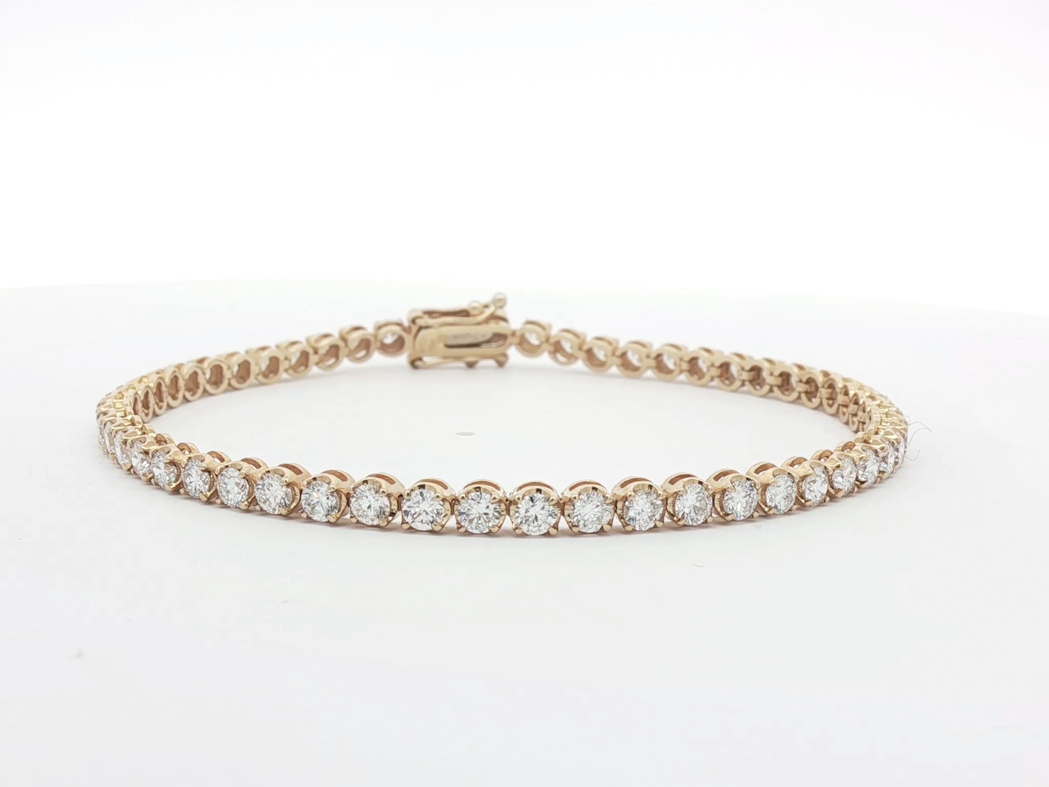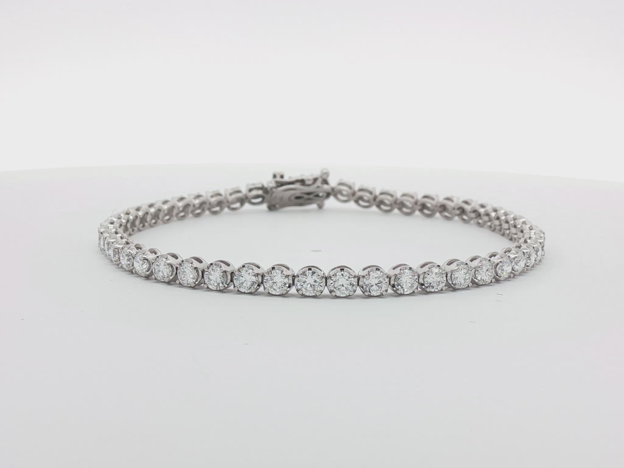 Total Diamond Weight: 4.00ctStone Shape: RoundLength: 7.25 inchesDiamond Size: 2.75mmMetal: 9k GoldDiamond Quality: E VS/VVSSetting: Crown SetUK Hallmarked: YesConflict-Free Diamonds: YesJewellery Report: World Gemological Institute