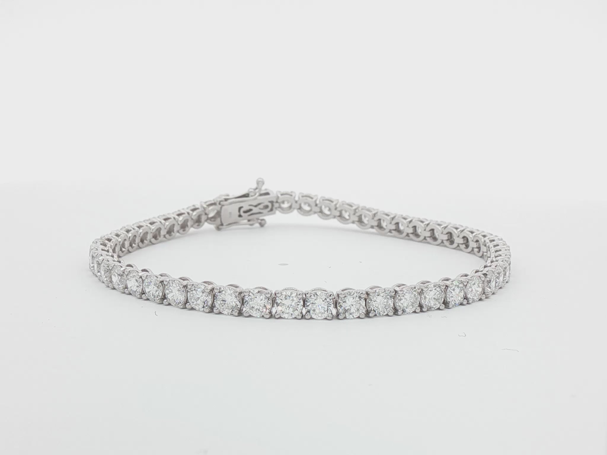 Total Diamond Weight: 8.00ctStone Shape: RoundLength: 7.25 inchesDiamond Size: 3.50mmMetal: 18k GoldDiamond Quality: E VS/VVSSetting: Classic Four ClawUK Hallmarked: YesConflict-Free Diamonds: YesJewellery Report: World Gemological Institute